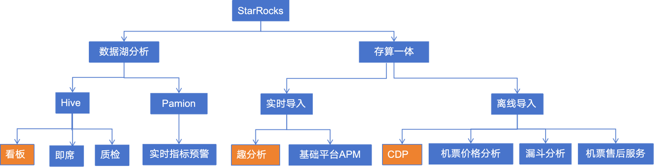 StarRocks 凭借其强大的查询分析能力,完美支持了对 Hive、Pamion 等数据湖存储平台的深度整合与高效查询。这一特性使得 StarRocks 能够轻松驾驭看板展示、即席查询、质量检测等多种复杂分析场景,为用户提供了前所未有的数据洞察能力。在存算分析方面,StarRocks 更是展现出了其独特的优势。它支持实时导入和离线导入两种灵活的导入方式,为用户提供了极大的便利,已经成功应用于趣分析、基础平台、CDP 等多个产品,同时在机票价格分析、漏斗分析、机票售后服务等场景中,也展现出了其强大的分析能力和应用价值。