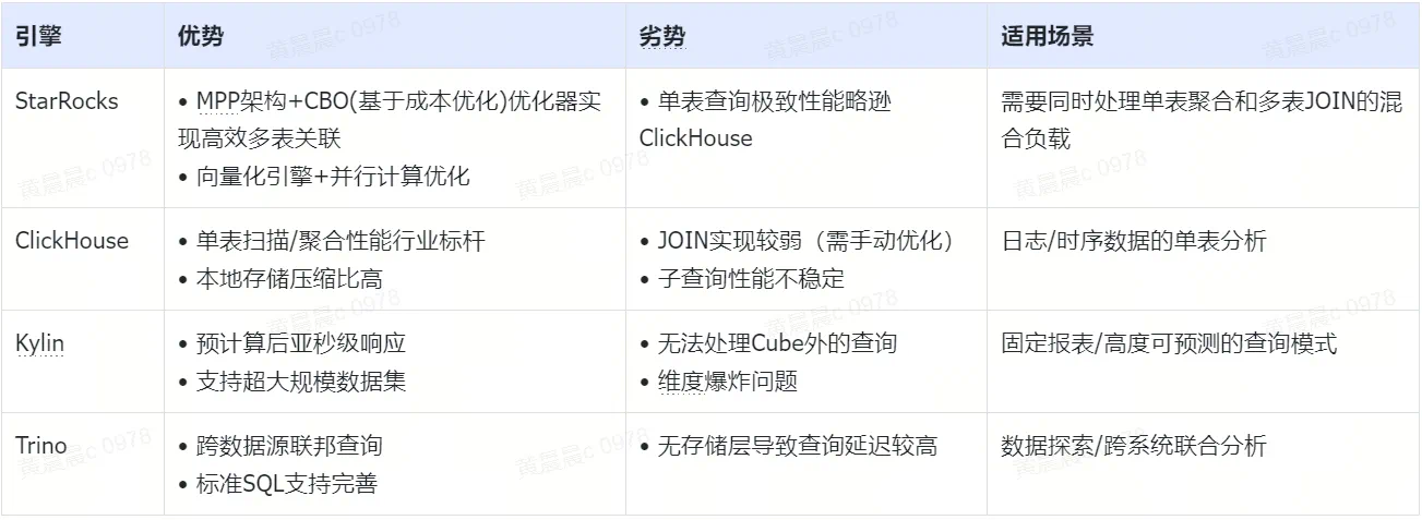 在选型过程中,对 StarRocks、ClickHouse、Trino、Kylin 等多个引擎进行了深入调研和评估。从场景覆盖度、查询性能、运维难度等多个角度综合考虑,StarRocks 表现优异,最终成为去哪儿网数据平台升级的首选方案。