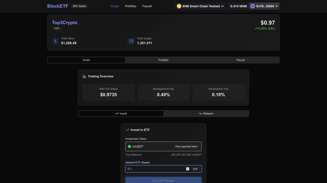 今天是启动该项目后的第 9 天,BlockETF 正式上线测试网,地址是: