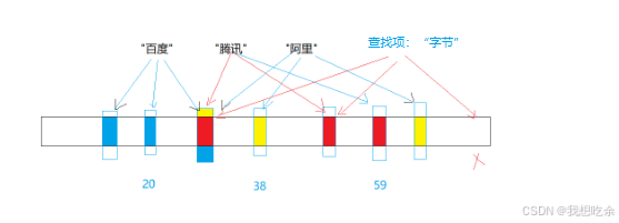 问查找“字节”(假设对应59)的结果如何? 查找结果:“字节”是存在的,因为腾讯也是59。