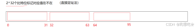 数据是否在给定的整形数据中,结果是在或者不在,刚好是两种状态,那么可以使用一个二进制比特位来代表数据是否存在的信息,如果二进制比特位为1,代表存在,为0则代表不存在。