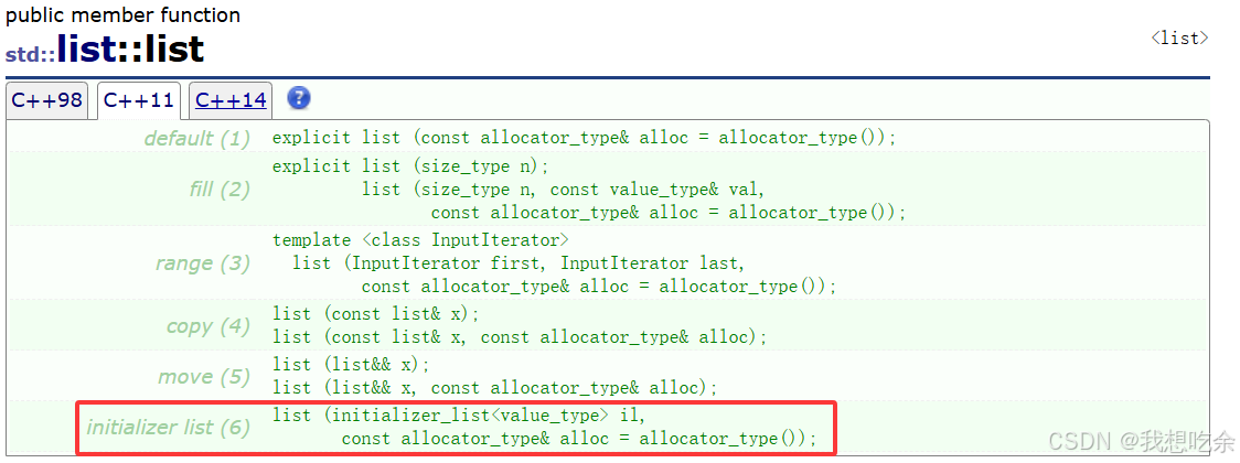 当用列表对容器进行初始化时,这个列表被识别成initializer_list类型,于是就会调用这个新增的构造函数对该容器进行初始化。