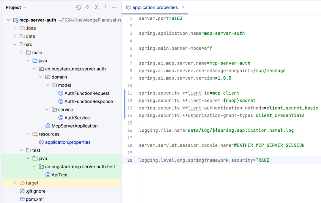 的时候,增加 auth 认证,auth 来访问本地一个 http 接口。你可以是 SpringBoot 实现的接口。这个接口负责验证你的秘钥是否正确。同时你的 SpringBoot 服务还可以提供出一个创建秘钥的平台,让接入方使用。小傅哥,已经为你准备好了一套 AI RAG、MCP、Agent 实践编程课程,使用 Java + Spring AI 框架,增强自己的 AI 应用开发能力,迅速囤积编程技能,满足各个公司招聘时对AI应用类开发的要求!如下,课程目录,全程文档小册 + 视频带着你从0到1学习。
