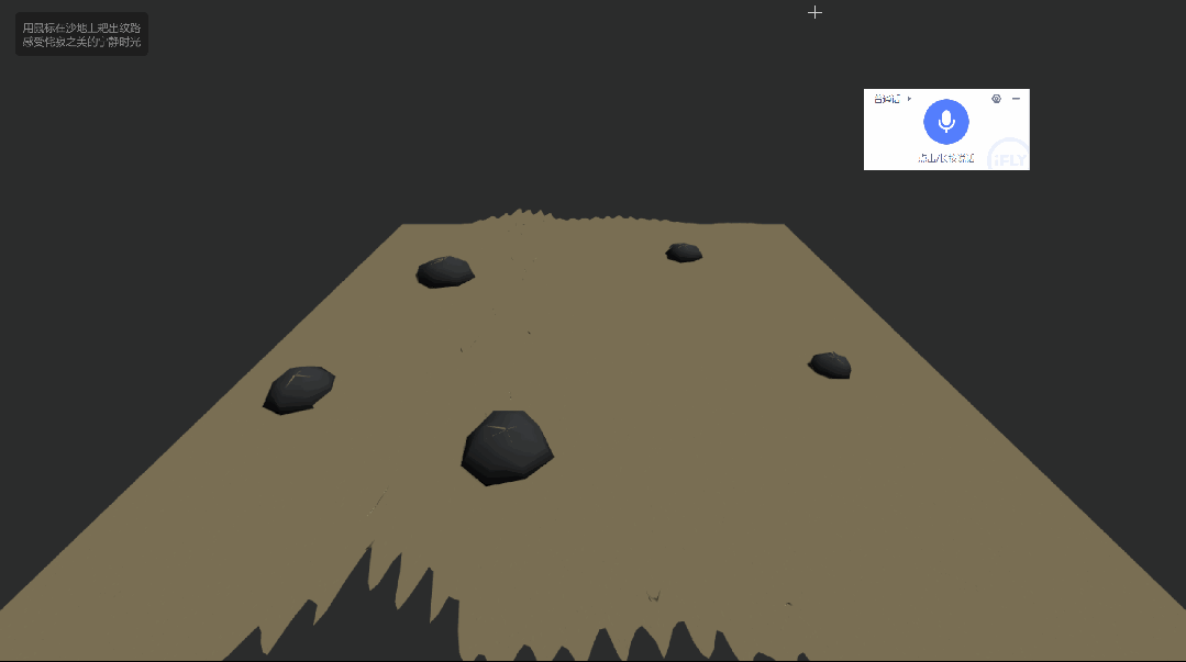 有几块形态自然的岩石。用户可以用鼠标在沙地上【耙出涟漪般的纹路】。