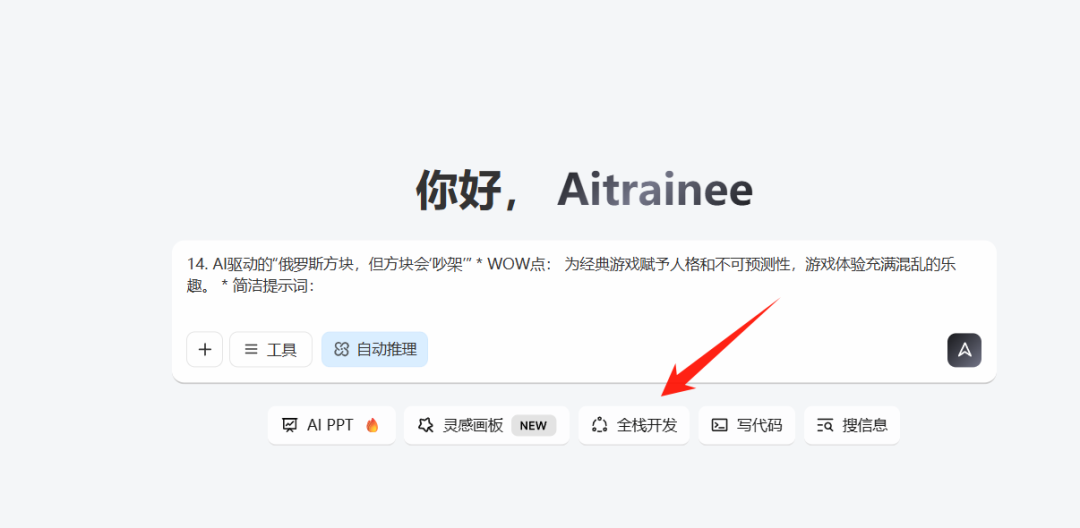 他这个全栈开发做的不错。除了构建完成之后部署完。这玩意儿连ai的api都给你接入了。直接一次提示就可以出来一个可以玩的ai服务。