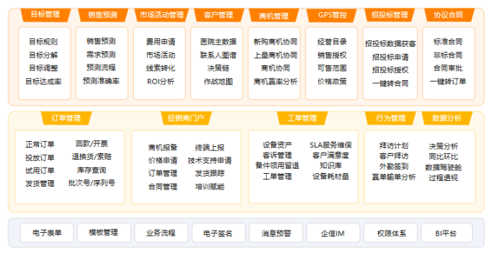 适用企业类型:中大型企业,需全流程合规管理、复杂渠道协同(如高值耗材、影像设备厂商)