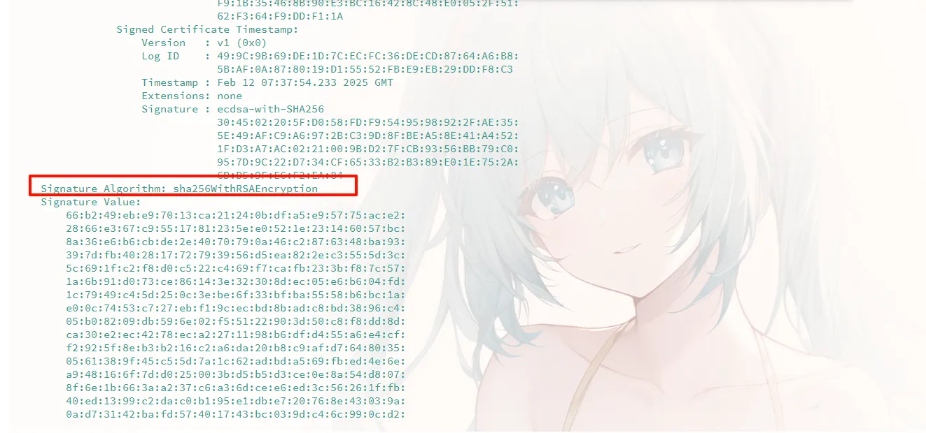 Signature Algorithm :签名算法(如 SHA256 with RSA)。