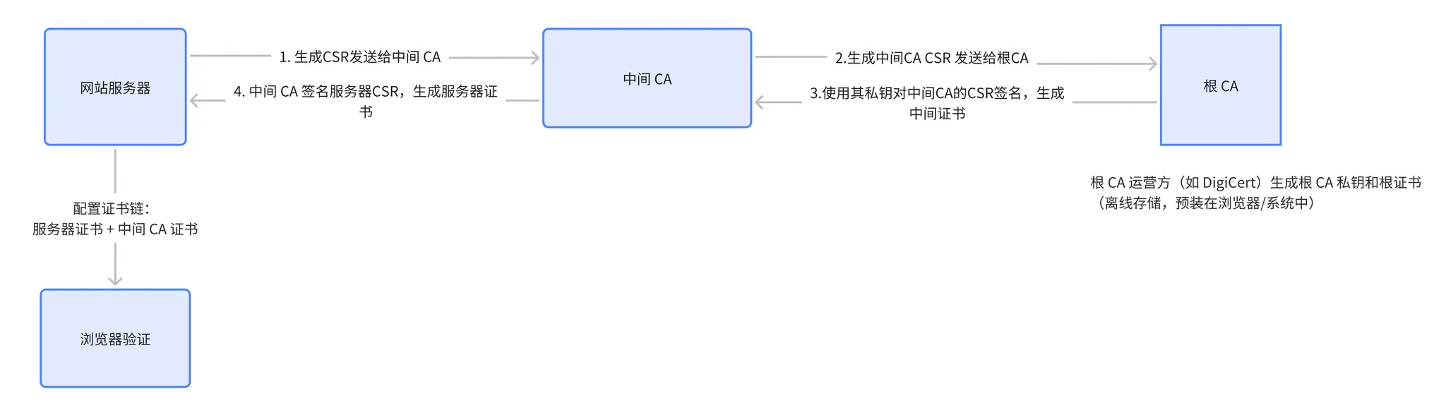 当浏览器访问 HTTPS 网站时,会验证证书链的完整性: