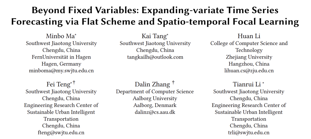 作者:Minbo Ma(马敏博), Kai Tang(唐楷), Huan Li(李环), Fei Teng(滕飞), Dalin Zhang(张大林), Tianrui Li(李天瑞)