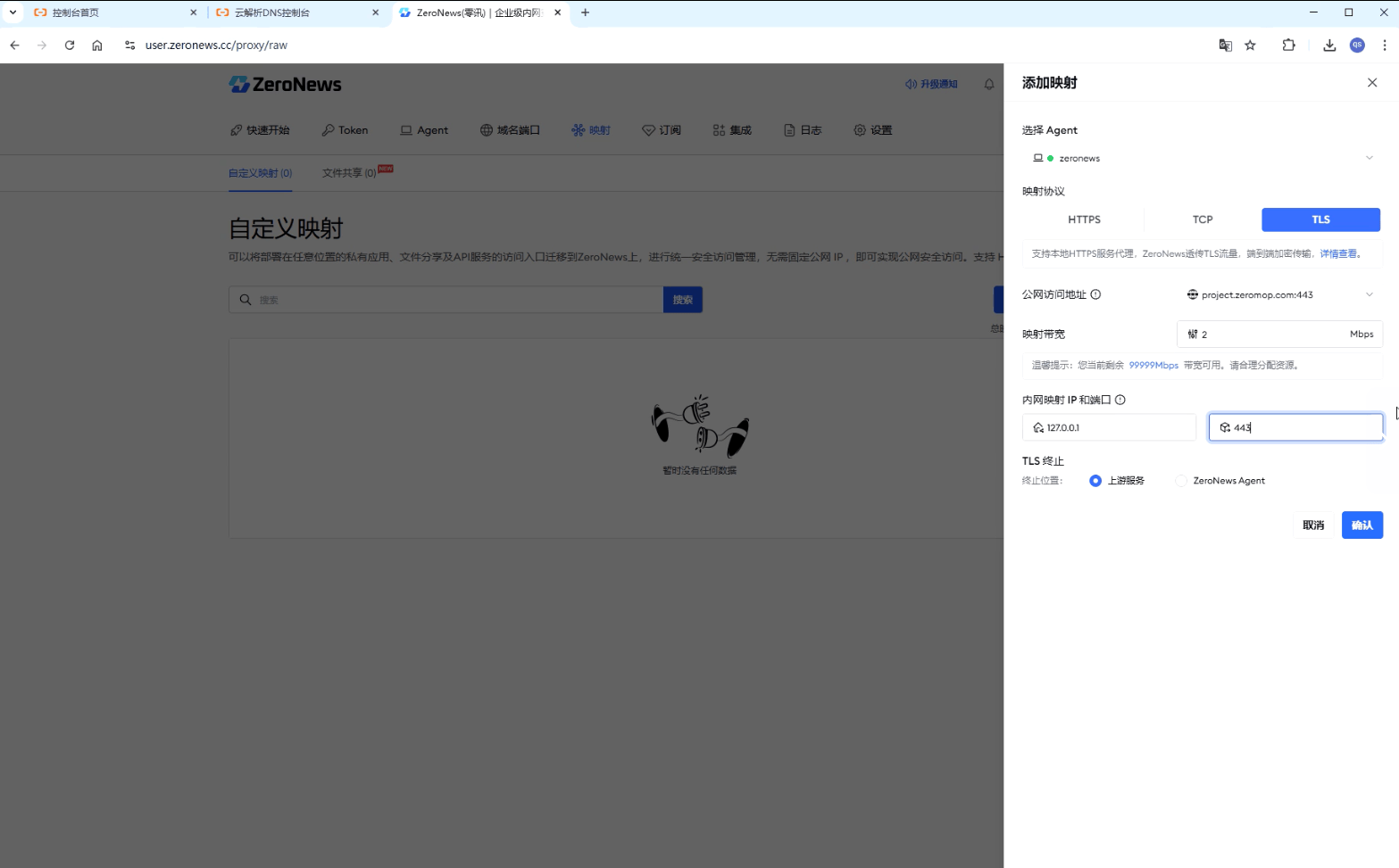 使用TLS映射-ZeroNews Agent 终止