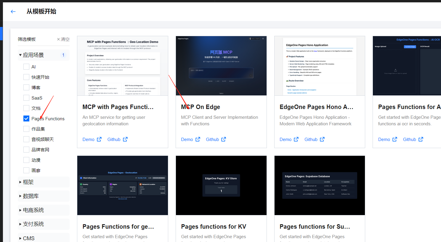 进入以后我们可以看到有很多模板可供我们选择,我们这里选择MCP On Edge: