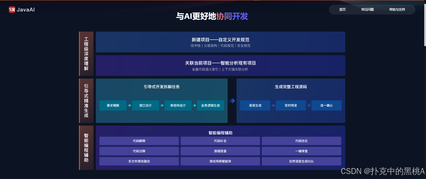 在电商零售领域,“高并发峰值” 与 “数据一致性” 的矛盾、“业务灵活性” 与 “系统稳定性” 的平衡始终是技术团队的核心挑战。传统开发模式下,一套能支撑百万级日订单的电商系统需投入 10 人团队开发 6 个月以上,且频繁面临 “秒杀超卖”“订单状态混乱”“库存不一致” 等问题。飞算 JavaAI 通过电商场景深度适配,构建了从前端流量削峰到后端供应链协同的全栈解决方案,将核心系统开发周期缩短 65% 的同时,保障了大促期间 99.99% 的系统可用性。本文聚焦电商零售领域的技术实践,解析飞算 JavaAI 如何重塑电商系统开发范式。
