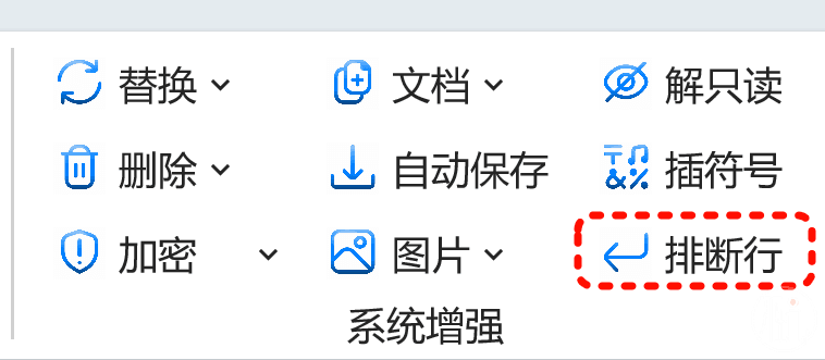 通过不坑盒子中的“排断行”这个按钮,可以一键将选中的内容进行断行重排。