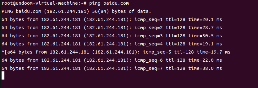 我们这里输入命令是没有问题的,所以我们这个虚拟机肯定是可以进行互联网的访问操作的