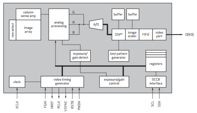 2)Ov7725 CMOS Sensor摄像头的内部功能模块框架与说明