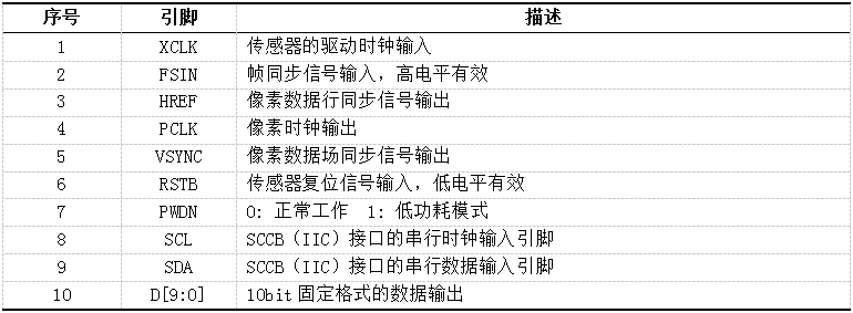 表2-1 Ov7725传感器控制信号的功能描述