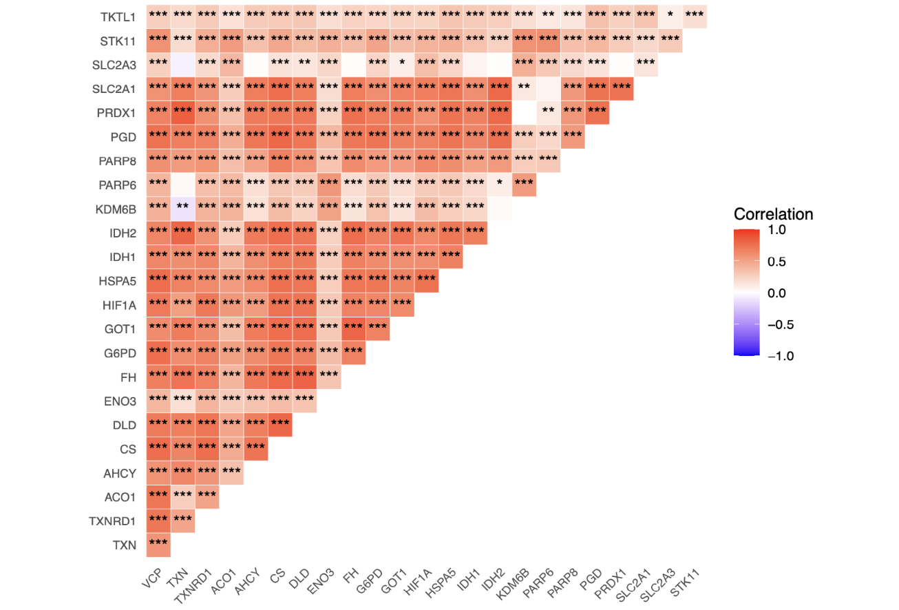 plot_genes_corr_tianfu(exp, related_gene, file_path = "figure/upper_triangle_stars.pdf",