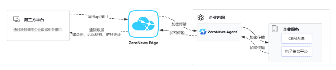 全程加密无明文暴露:数据在公网、ZeroNews 加密隧道、直到抵达用户可控边界(上游服务)之前,始终处于加密状态。ZeroNews 基础设施对传输内容完全不可见。
