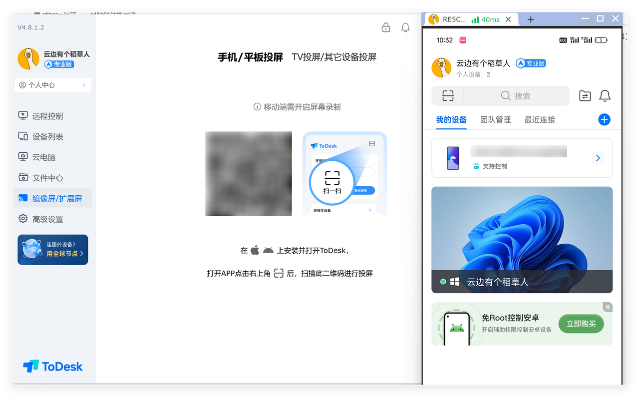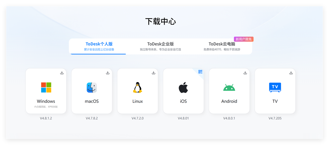 ToDesk兼容多种平台,Windows,macOS,Linux,手机iOS和安卓用户,也支持TV平台。还有,我发现ToDesk也上鸿蒙系统了