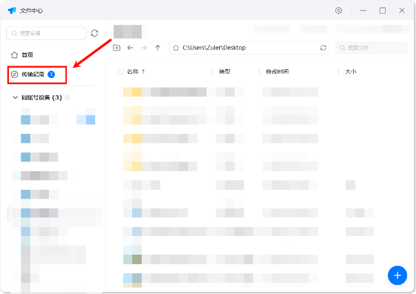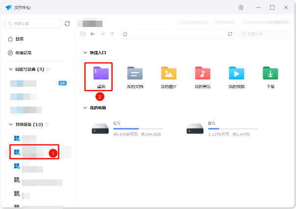 1.在文件中心选择要传输的设备以及目标文件夹;
