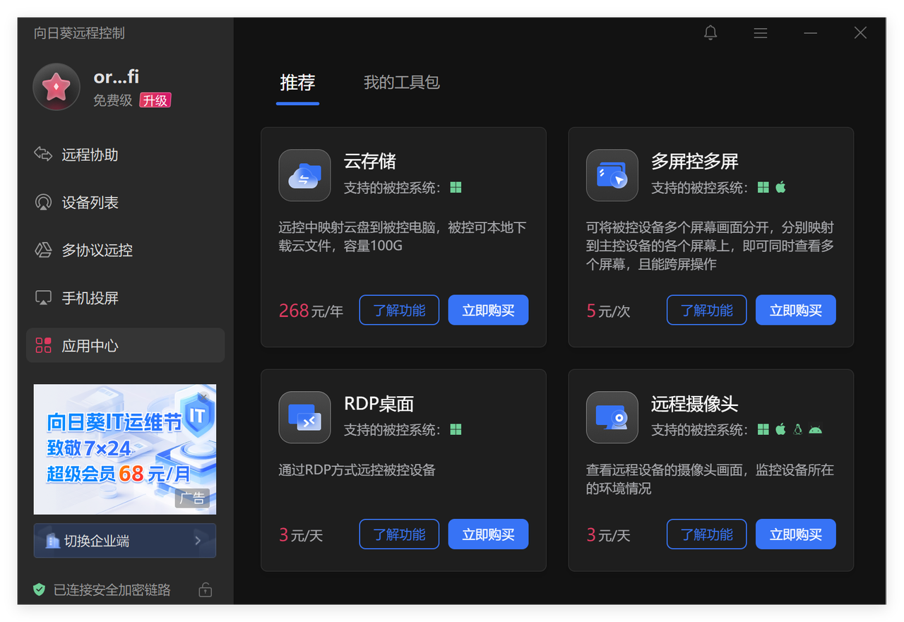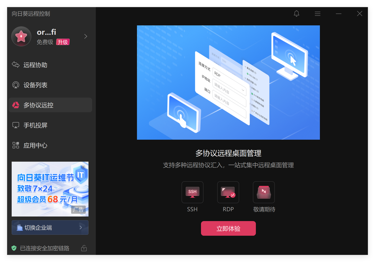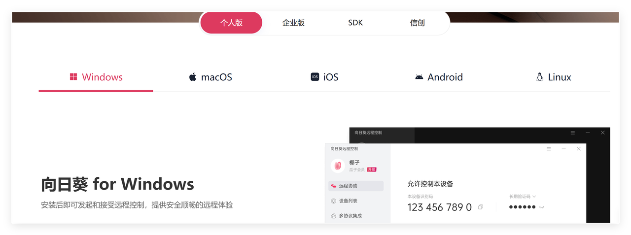 向日葵是一款功能全面的远程控制软件,支持远程桌面、远程文件、远程摄像头等多种场景,广泛应用于远程办公、IT运维等领域。它支持Windows、macOS、Android、iOS等多个平台。