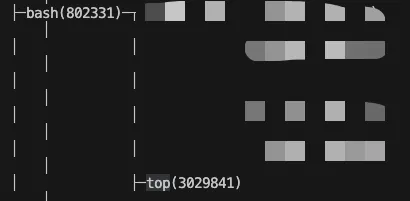 如上图所示,可以看到top进程完全替换了bash进程,接管了sleep子进程