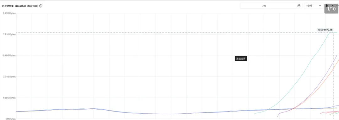 短短72小时内,容器内存增长超7GB,且毫无收敛迹象: