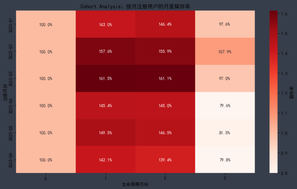 values='retention_rate')至此,数据处理的部分就完成了,接下来是数据可视化的部分工作了: