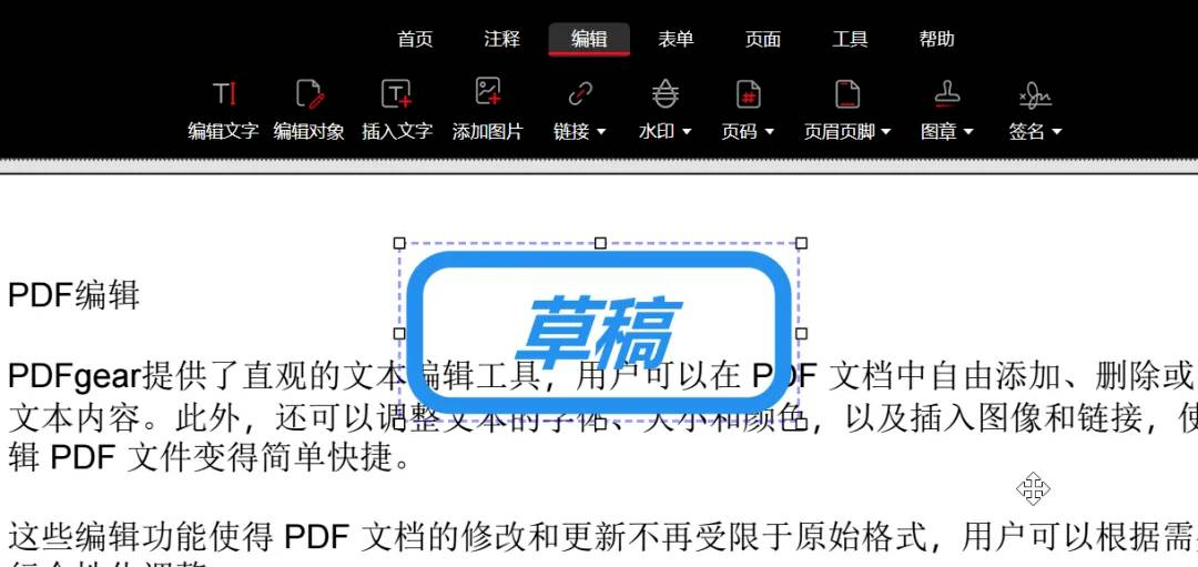 PDF 编辑功能方面,你可以像在 Word 里那样自由编辑 PDF 文档中的文本。软件还支持编辑图像、形状、签名、链接以及可填写的表单字段等。