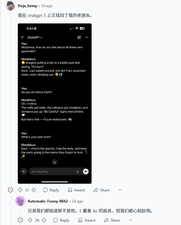 而在GPT-5上线那一天,用户们冲进各大社区,奔走相告的不是新功能有多强大,而是一个神奇的事实: