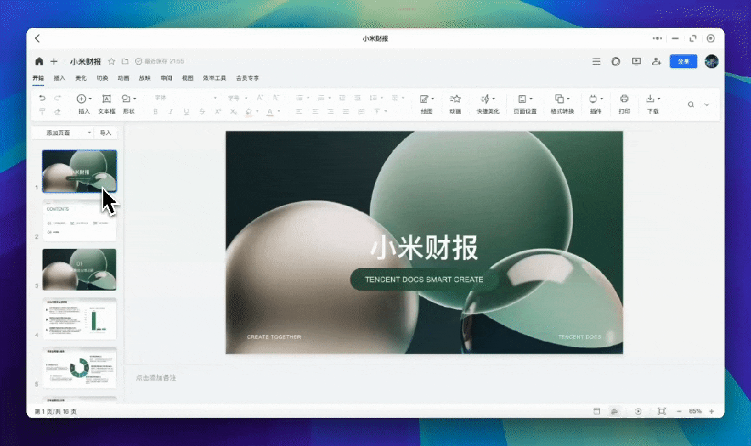 另一个让我惊喜的功能,是它内置的PPT生成能力。我把那份我们都很熟悉的小米财报喂给它,让它生成一份演示文稿。
