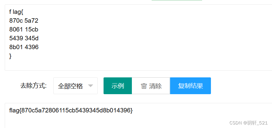 2、将这段字符复制到word或记事本替换掉“.”,清除字符串里的空格,整理出flag。 清除空格在线工具