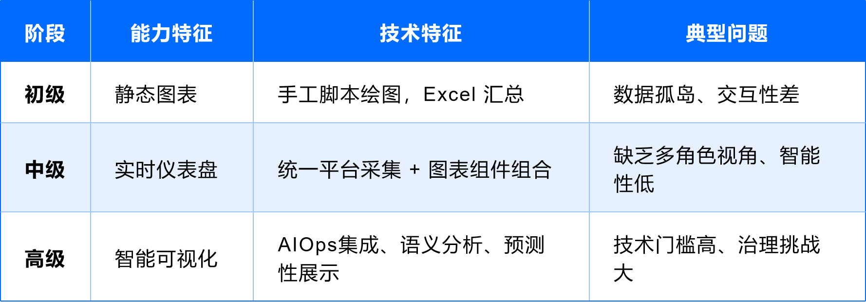 企业在监控可视化方面的建设,通常会经历如下能力阶段: