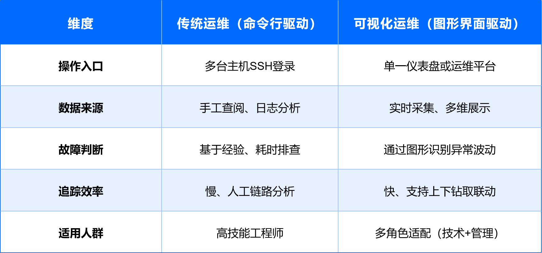 可见,可视化是现代运维“降本增效”的重要抓手,也是一种让系统“变得看得见”的能力体现。