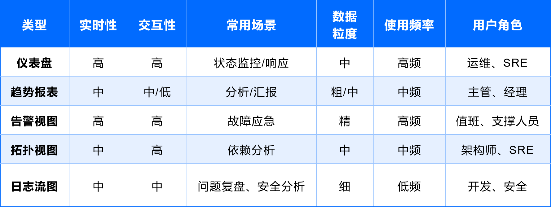 - 典型表现:所有用户看到的是“同一套图”,不区分开发、运维、管理者。