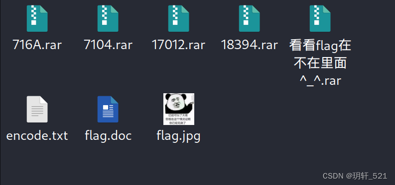 解压三个没有密码的压缩包,得到encode.txt、flag.doc、flag.jpg还有一个rar压缩包。有两个压缩包提示需要密码,暂时无法解压。