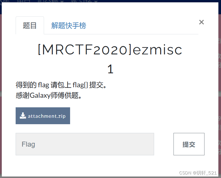 得到的 flag 请包上 flag{} 提交。 感谢Galaxy师傅供题。