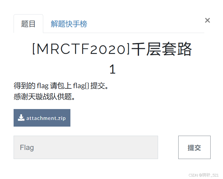 得到的 flag 请包上 flag{} 提交。 感谢天璇战队供题。