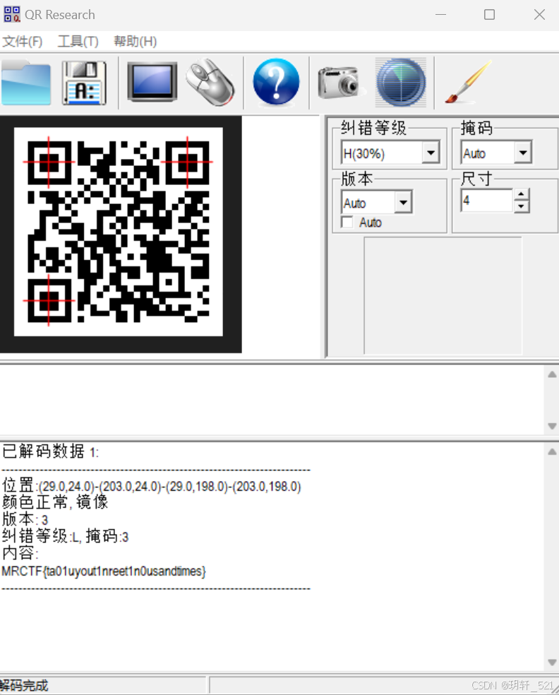 得到一个二维码图像,使用QR Research扫码,得到flag