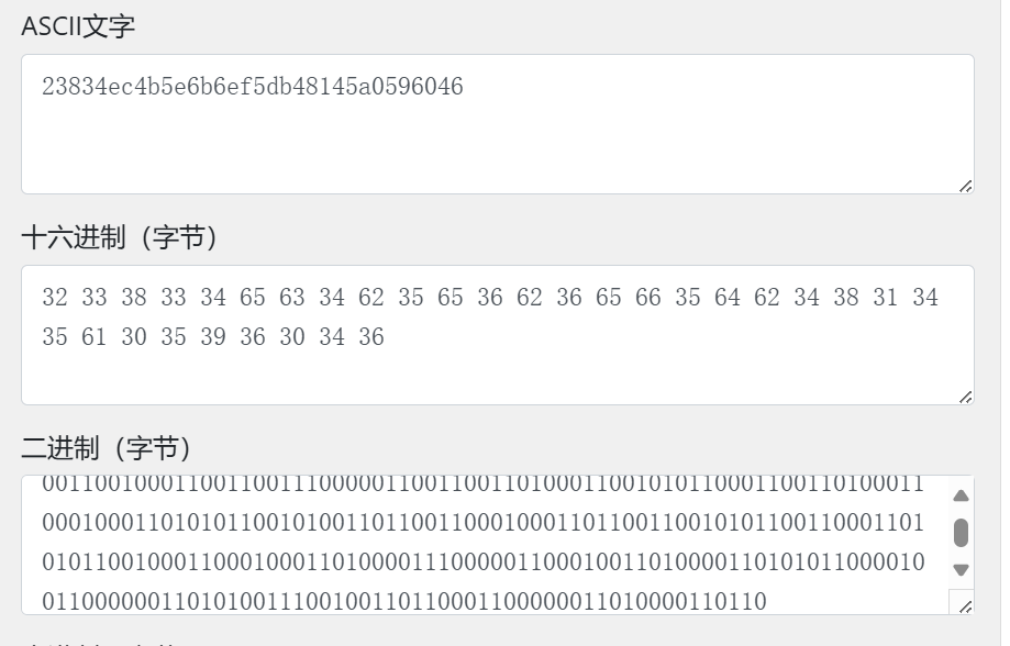 0011001000110011001110000011001100110100011001010110001100110100011000100011010101100101001101100110001000110110011001010110011000110101011001000110001000110100001110000011000100110100001101010110000100110000001101010011100100110110001100000011010000110110成功转换为ASCII:23834ec4b5e6b6ef5db48145a0596046。