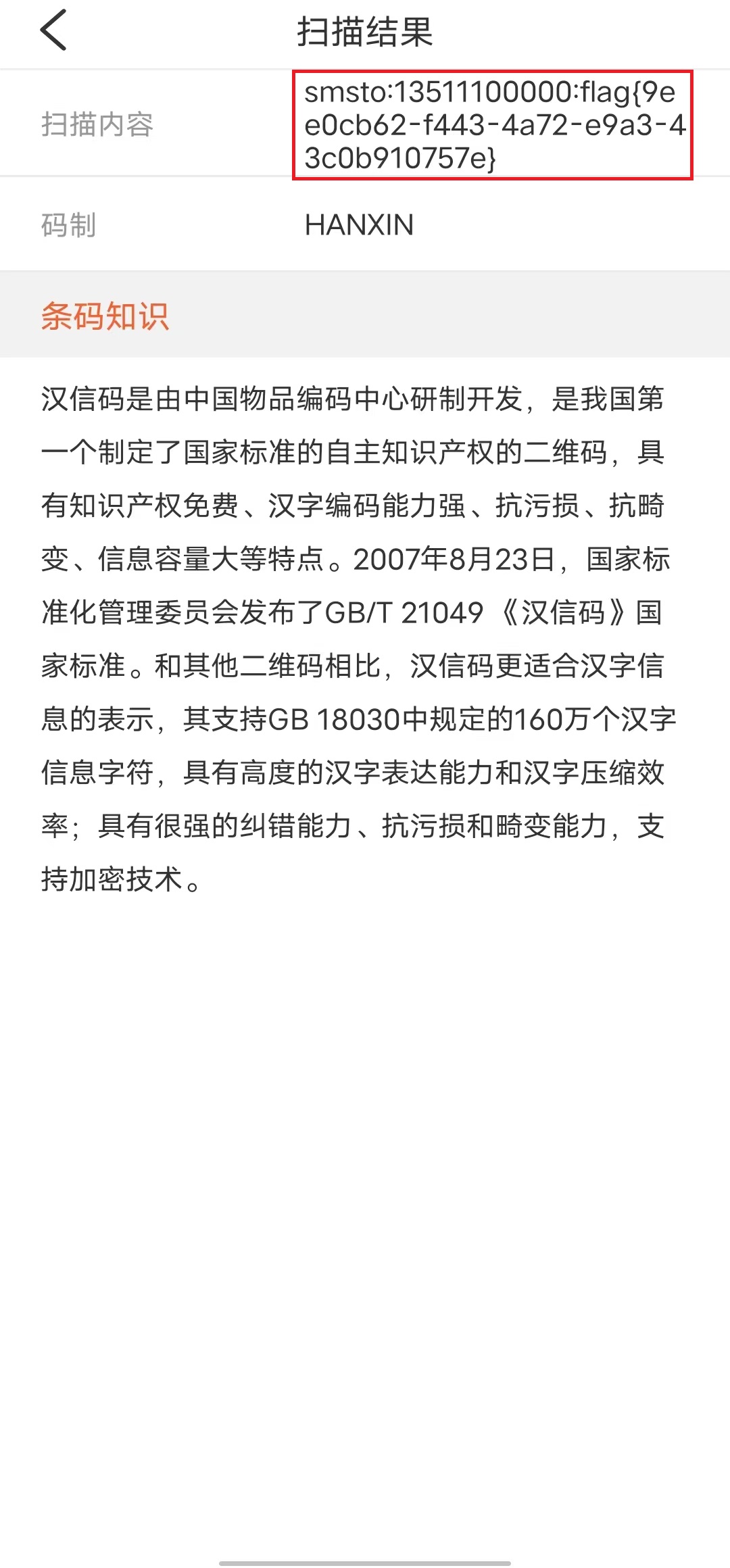 2、这其实是一个叫汉信码的二维码,需要使用中国编码网的中国编码APP,扫码得到flag。