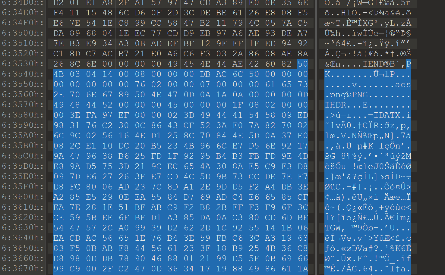 解压得到aes.png文件,这应该就是AES的密钥。
