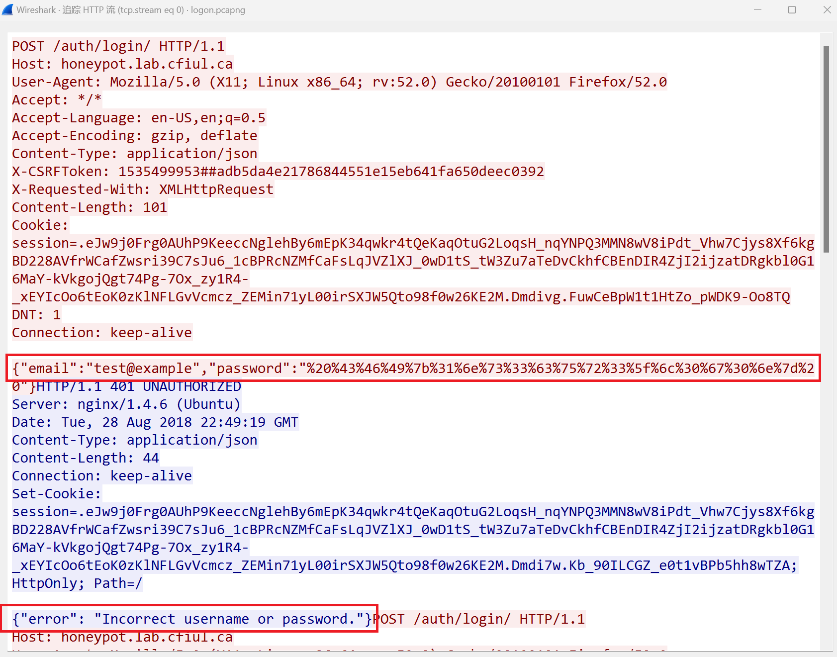 直接追踪HTTP流,看一下内容。发现是登录流量,尝试登录三次,都失败了。但用户名和密码并没有变化,只是尝试登录了三次。