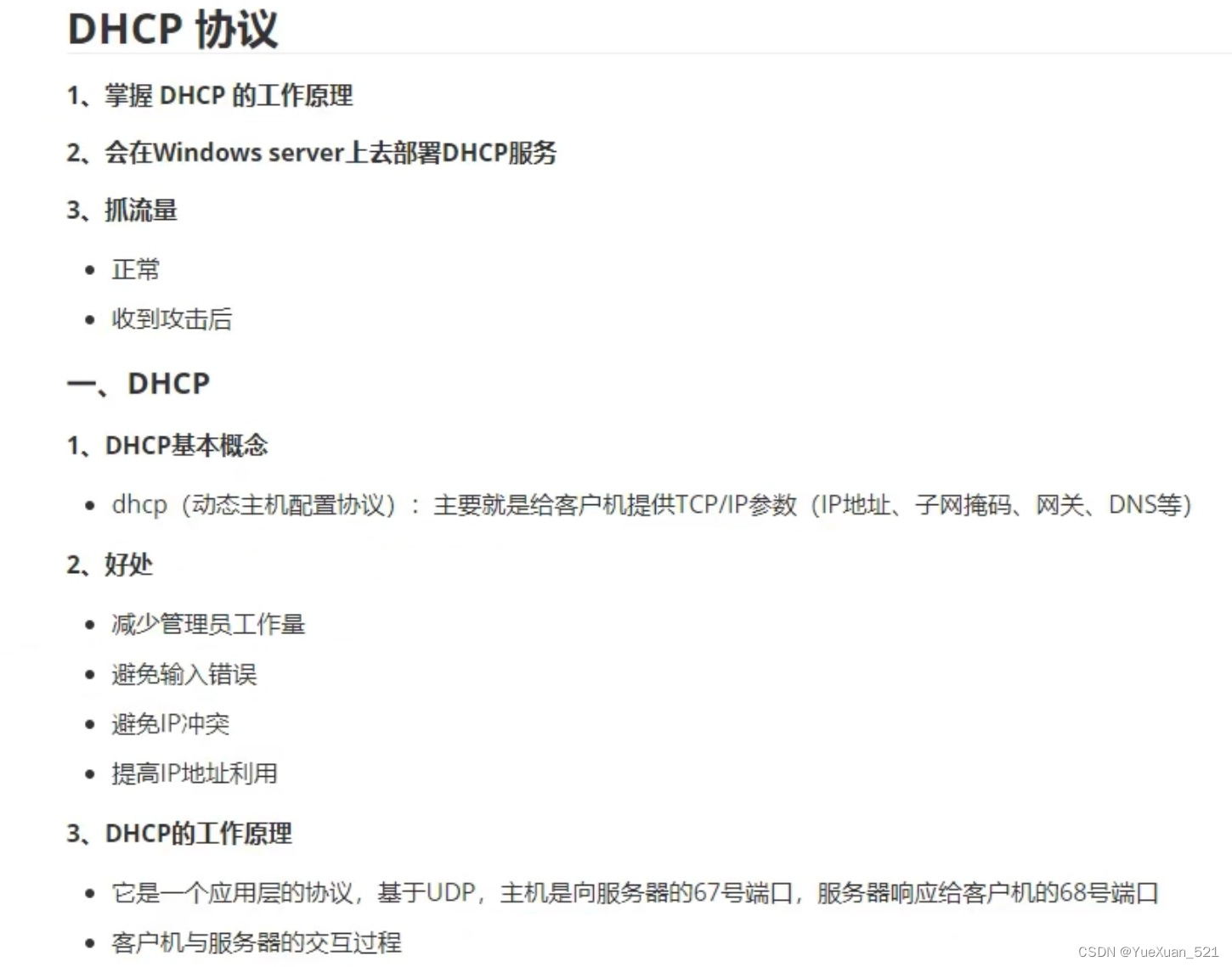 1、掌握 DHCP 的工作原理 2、会在 Windows server 上去部署 DHCP 服务 3、抓流量 .正常 ·收到攻击后