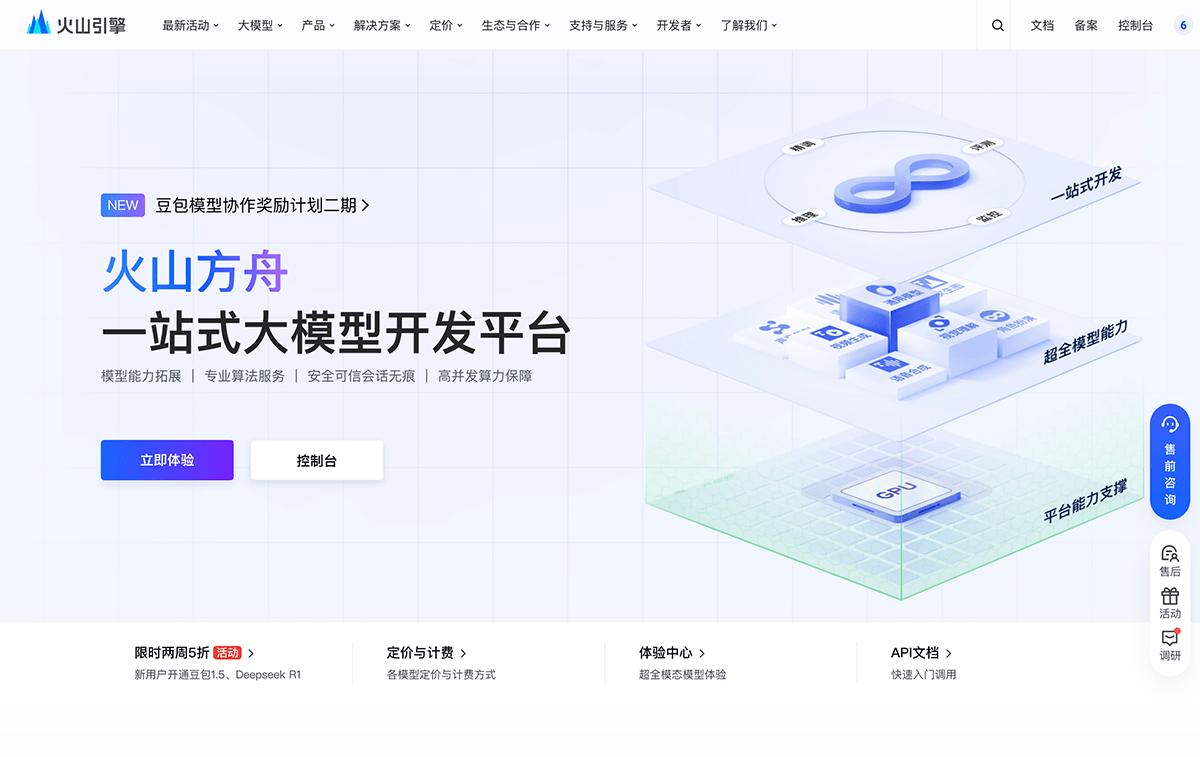 火山方舟:支持多种大模型(如豆包1.5、DeepSeek-R1等)的灵活组合,有丰富的插件生态系统和场景开发应用。