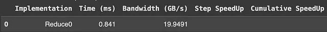 当前方法表现良好,但仍有进一步优化的空间。通过分析性能指标发现,在Tesla T4上约41 GB/s的带宽使用率表明我们并未达到或耗尽带宽上限。另一方面,归约操作具有低算术强度的特征,意味着我们也不受计算能力限制。