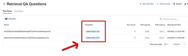 评估器,确保每个模型运行都被两个评估器评分。client.run_on_dataset