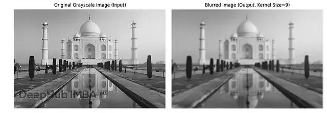axes[1].set_title(f'模糊处理图像 (输出, 卷积核大小={kernel_size})')
