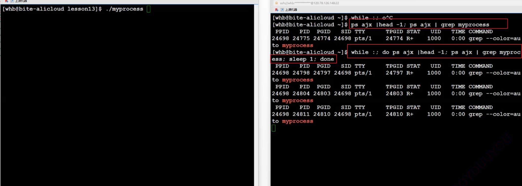 每隔一秒钟查一次进程的状态