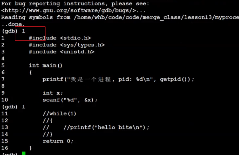 b9给第九行打断点